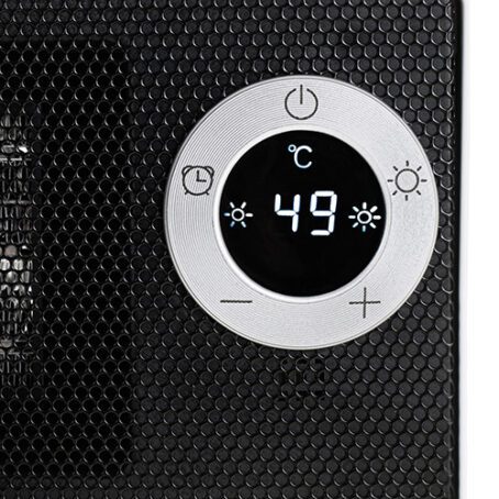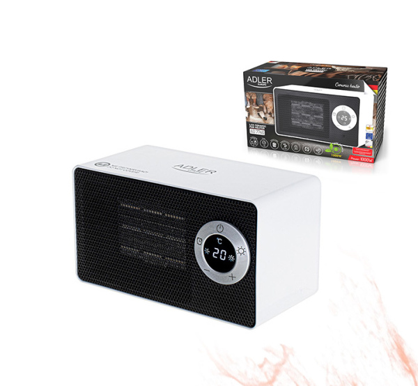 The Adler ceramic fan heater with an LCD display is an advanced device that enables effective and comfortable heating of rooms. Thanks to the innovative ceramic technology, it ensures quick and even heat distribution, guaranteeing a pleasant temperature in every corner. One of the main advantages of this fan heater is the readable LCD display, which allows intuitive control and tracking of the desired temperature in the room. The device has a timer that allows you to set the working time from 1 to 8 hours. Adjustable temperature from 10°C to 49°C gives you full control over the desired level of warmth. Thanks to this, the fan heater can be adapted to different conditions and user preferences, ensuring the optimal temperature on both colder and warmer days. The device is equipped with a safety switch that automatically cuts off the power in the event of the device tipping over and overheating protection. The Adler ceramic fan heater with an LCD display is an advanced device that combines modern technology, ease of use and effective heating.
