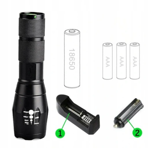 – It is powered by 3 AAA batteries or 1 rechargeable 18650 battery.