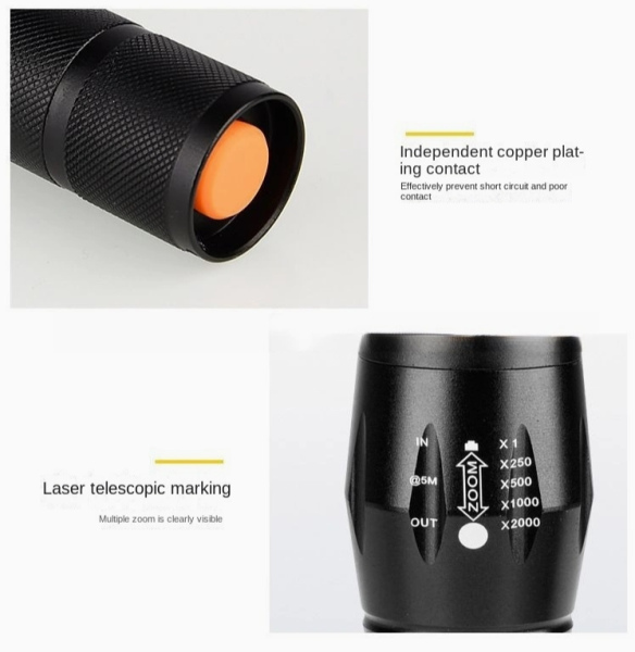 – The flashlight is made in a professional manner, with great attention to detail. Each connector is equipped with a high-quality rubber gasket, waterproof and shockproof.